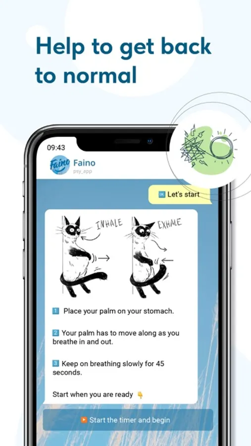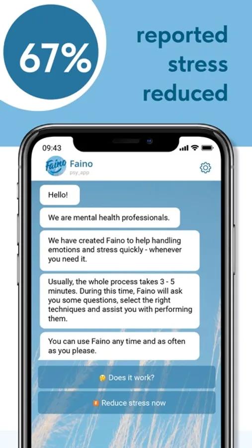 Faino doesn't replace communication with a mental health specialist and doesn't solve internal and external problems. Faino's task is to help you quickly "here and now."