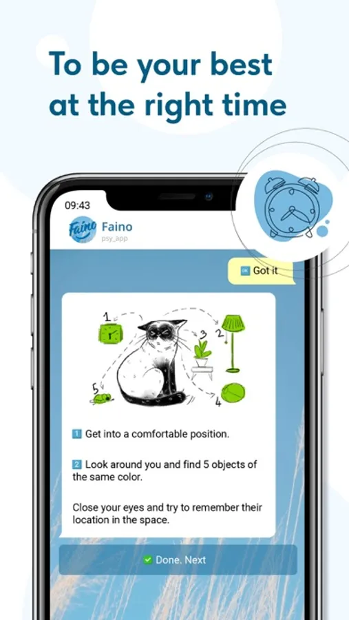 4. Faino will remind you to do the exercises before an important event or difficult situation.
