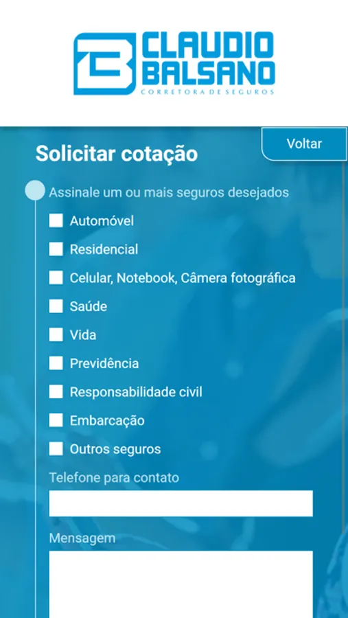 O CBC lhe permite consultar no smartphone, de maneira rápida, simples e intuitiva, as principais informações dos seus seguros de Auto, Residência, Vida e Agricola que foram contratadas pela Claudio Balsano Corretora.