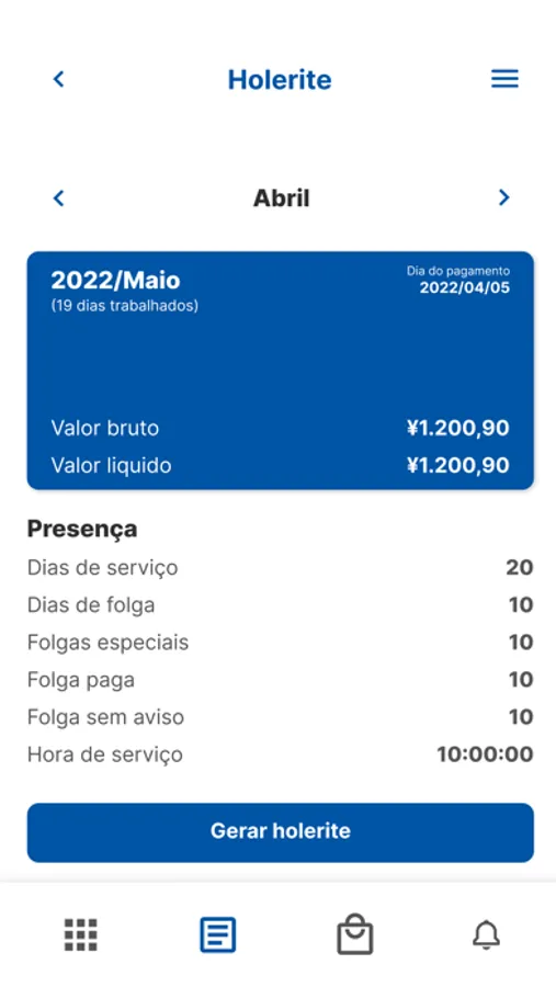 App para gerenciamento de funcionários, exibição de holerites, atualização de perfis, controle de pontos.