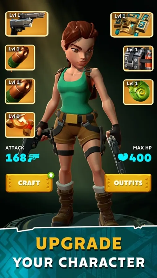 • Dropping to a knee after an epic run doesn’t signal the end! You’ll be awarded a trove of coins and experience points to upgrade Lara’s outfits and weapons, increasing your base attack and HP stats.