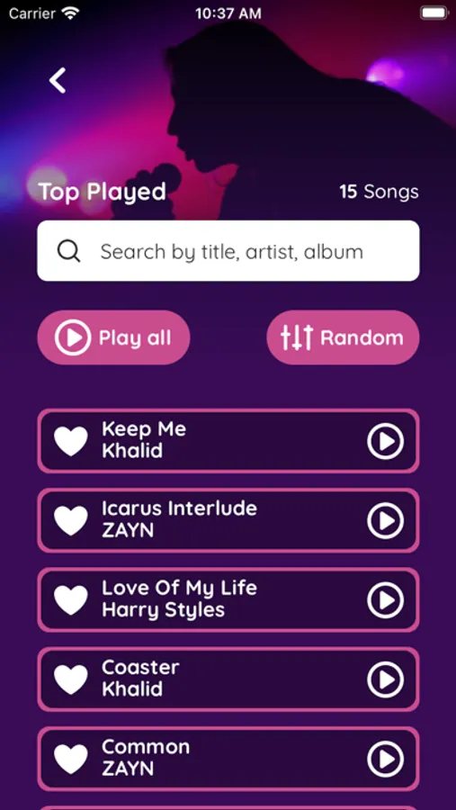 The Masingo karaoke app includes adjustable features such as a live Karaoke toggle (vocals on and off). Sing along with your favorite artists or switch their vocals off and become the star of the show!