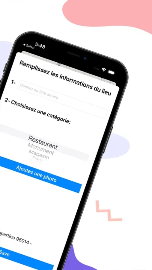 2 - Renseignez une catégories (Restaurant, Monument, Parc, Magasin, Autre)