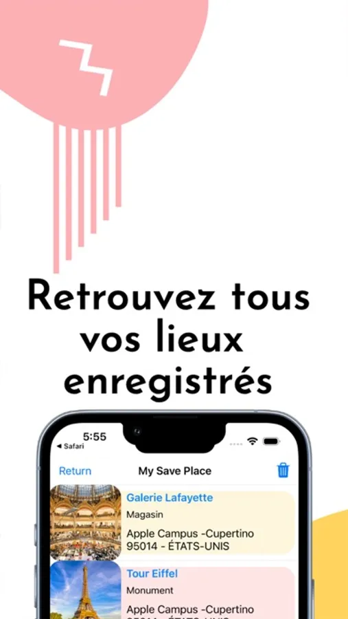Vous aurez la possibilité de revoir votre lieu enregistré quand vous cliquez sur un d'eux.