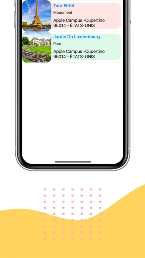 Les lieux enregistrés seront classés alphabétiquement par catégorie pour plus de clarté.