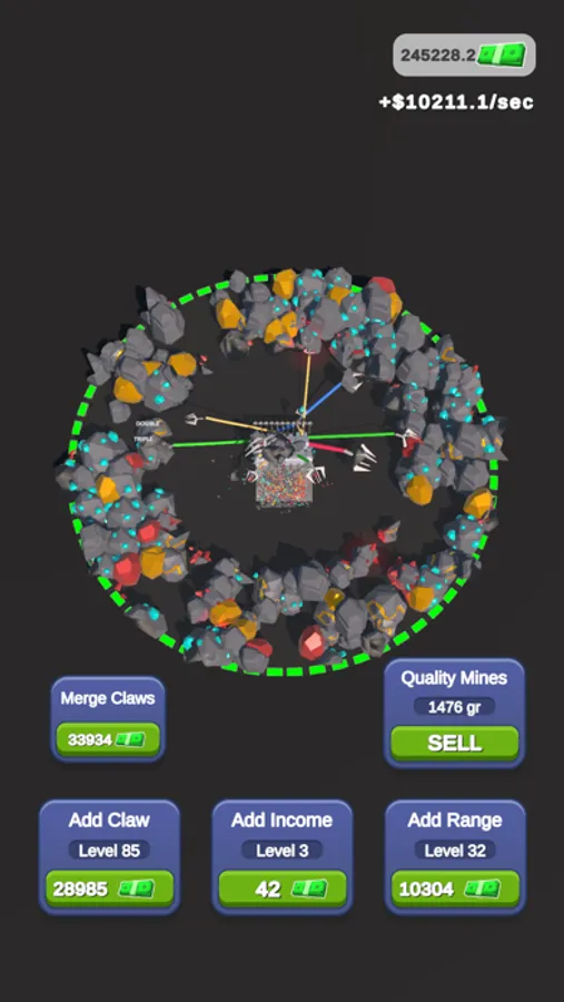 - Use add range upgrade to increase the range your claws reach and find new and exciting different stones and mines.