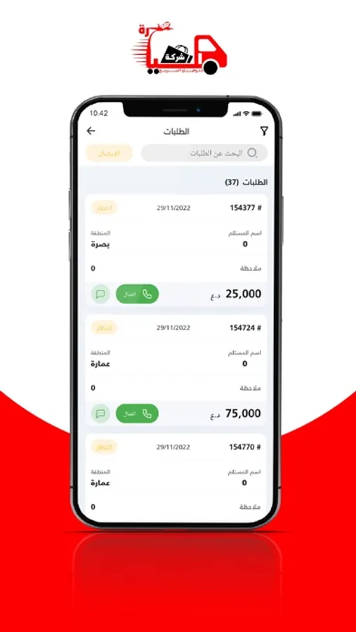 تطبيق خاص لأدارة طلبات التوصيل الخاصة بشركات الشحن يمكن استخدام النظام مع النظام المحاسبي المتكامل تبليغات واضافة ملاحظات على الطلبات والتحكم من قبل السائق والعميل وكشف حساب للتداولات المالية مع امكانية ارسال اخبار الى العملاء او السواق بالاضافة الى خصائص متعددة للنظام