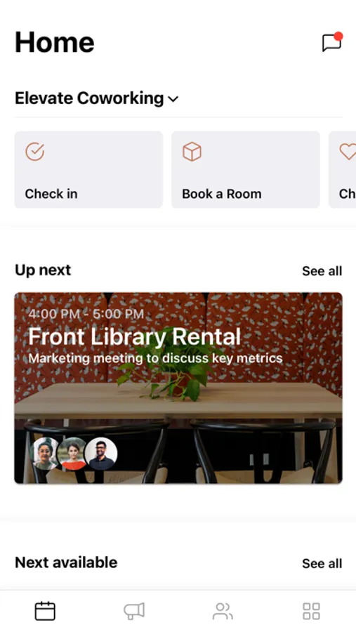 Easily check-in to Elevate, book meeting rooms and connect with other members through our digital community all within the app! For new members you can download and see our memberships options or purchase a day pass in app.