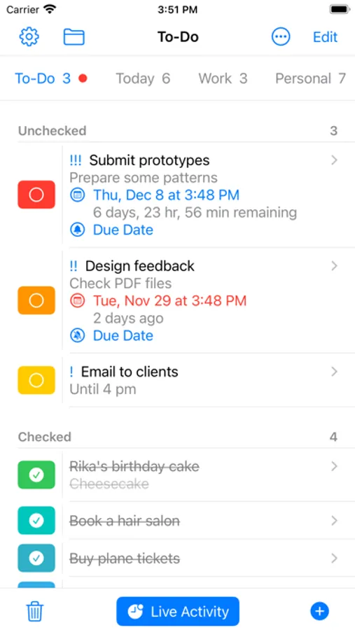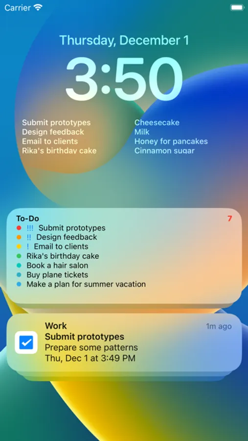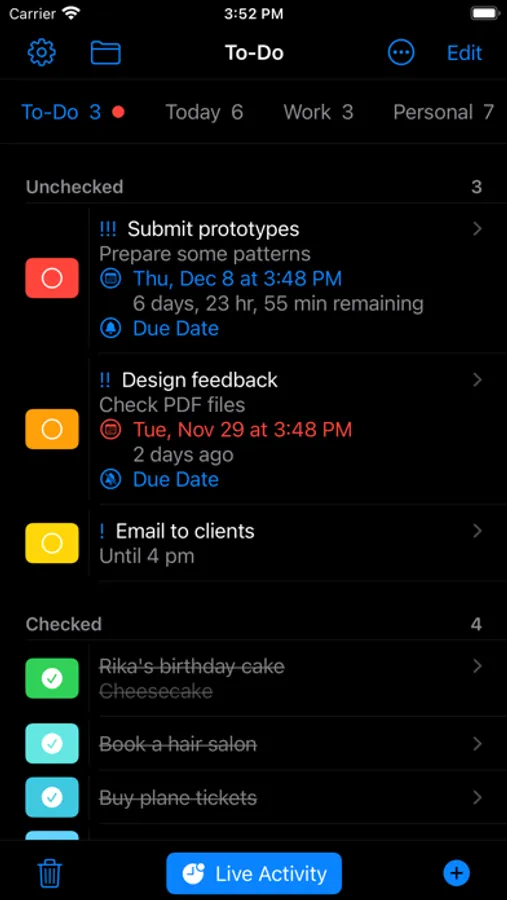 iOS16 live activity, dynamic island, home & lock screen widget compatible tab type to-do list app.