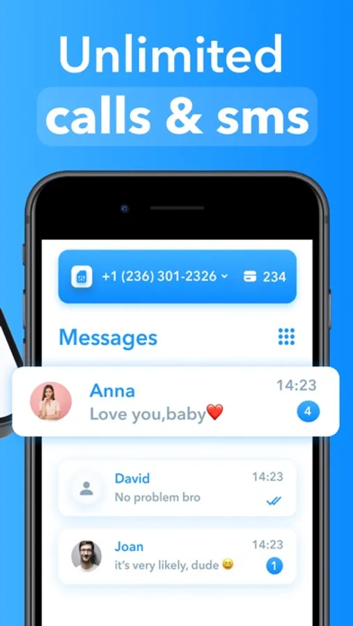 The app helps you to separate your social life & work. Use the app for unlimited calling and texting on the go.