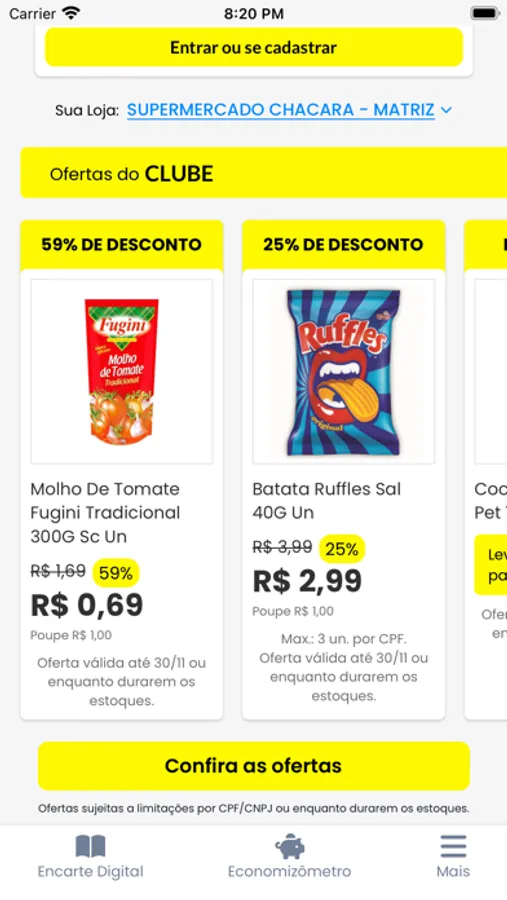 Com o aplicativo do Clube Chácara você tem acesso aos descontos exclusivos do Clube onde estiver. E ainda pode adicionar os seus itens preferidos a uma lista de compras ou criar uma lista de itens favoritos para acompanhar se entram em oferta.