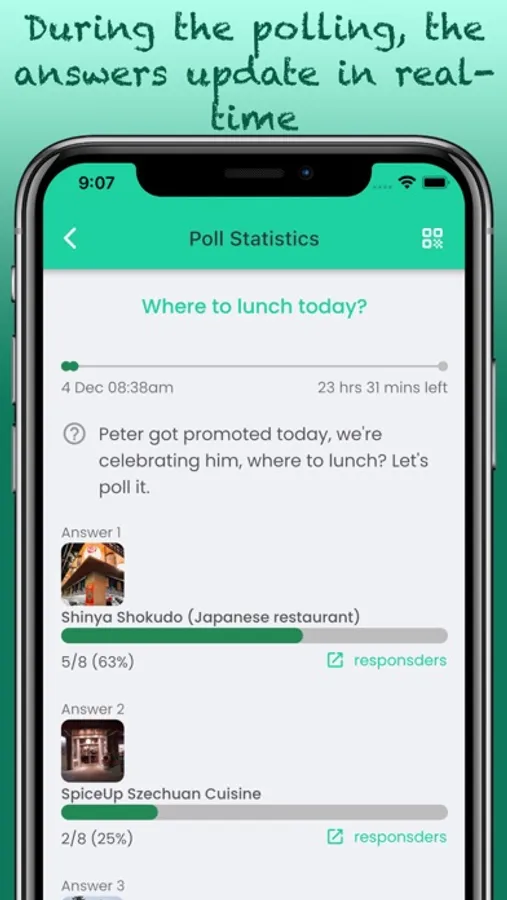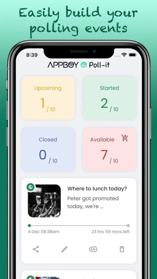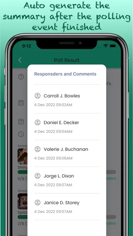 Send the poll event via email or social apps. When the polling finishes, the polling summary automatically generates for you so that you can review it anytime.