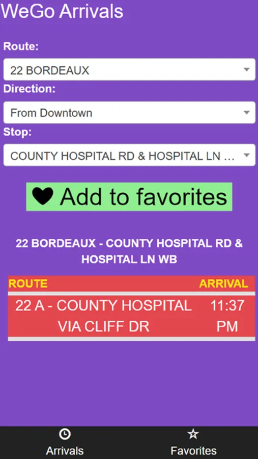 Live bus tracker for Nashville MTA WeGo Transit buses. Simply select a route, direction and stop to see the next bus arrivals. Save your favorite stops to see upcoming arrivals with a single touch.