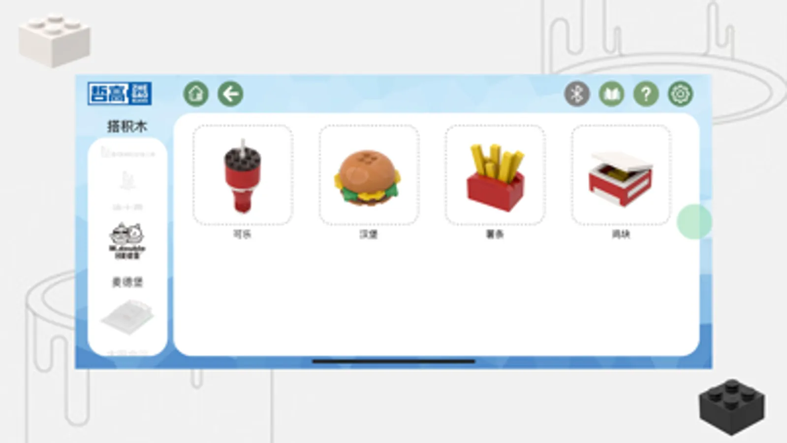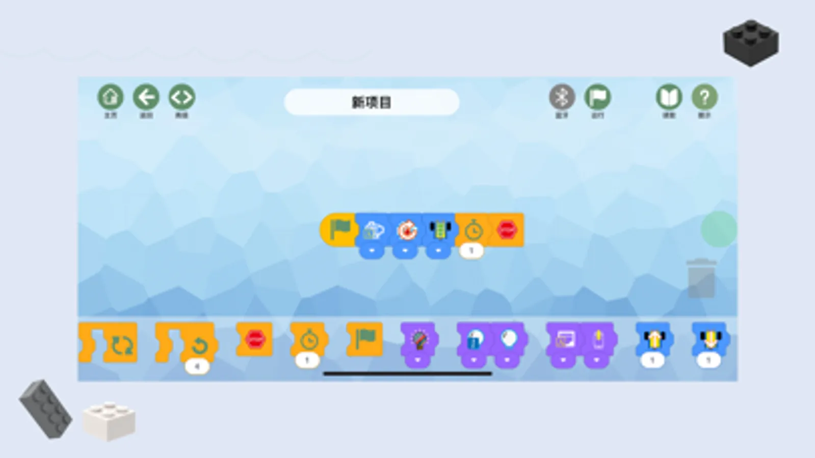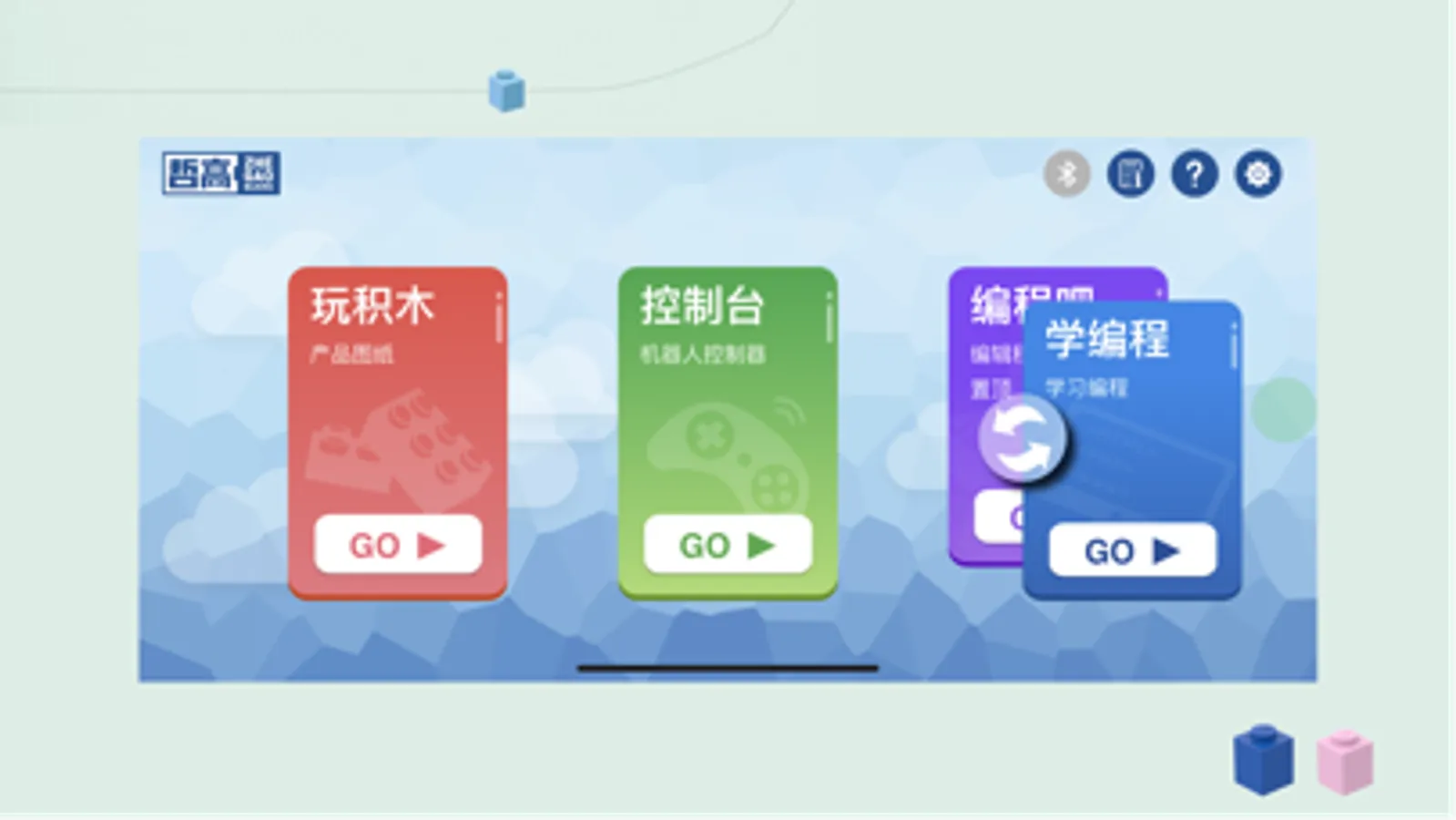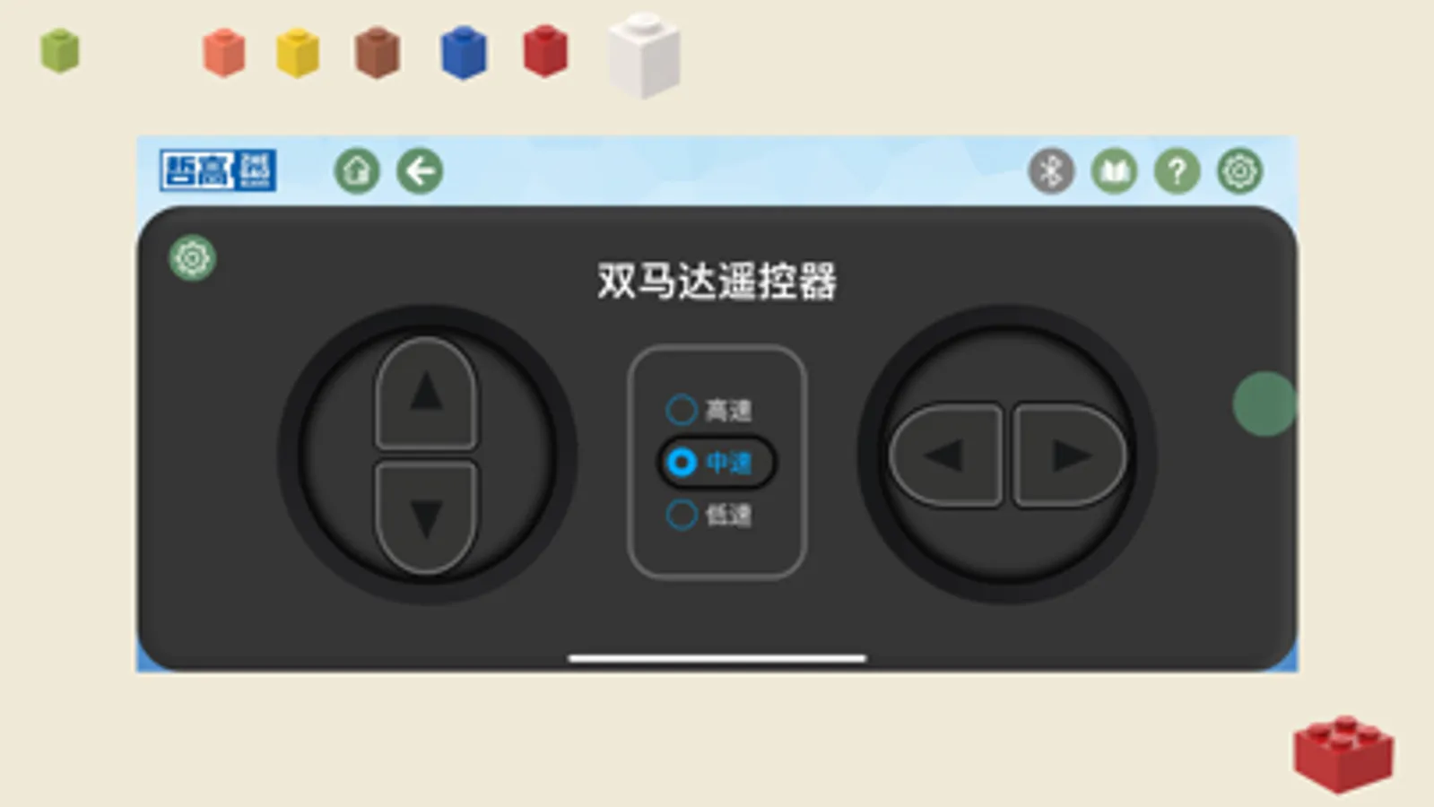 通过积木拼装教程组成相应的作品,并通过蓝牙来操作马达,还有通过编程来控制。