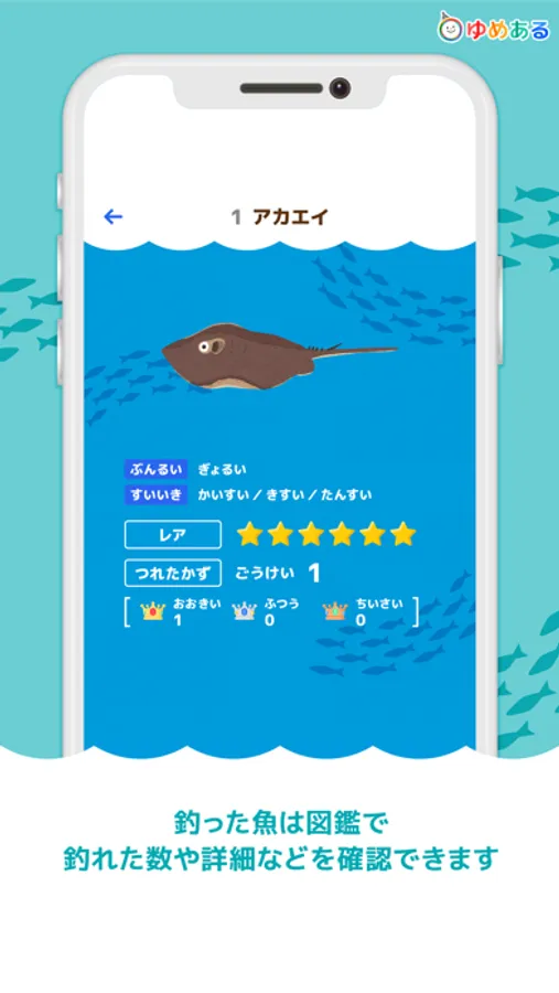 釣った魚は図鑑で、数など詳細を確認できるよ。