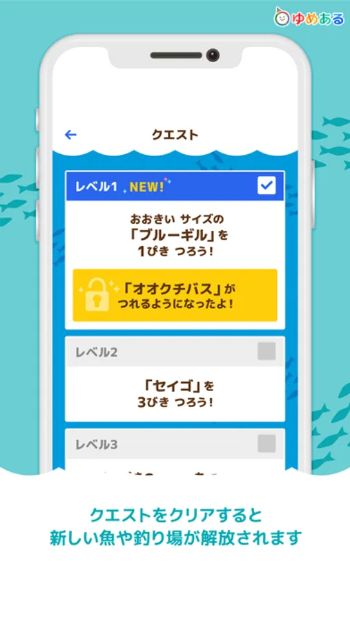 クエストをクリアすると、新しい魚や釣り場が解放されていきます!