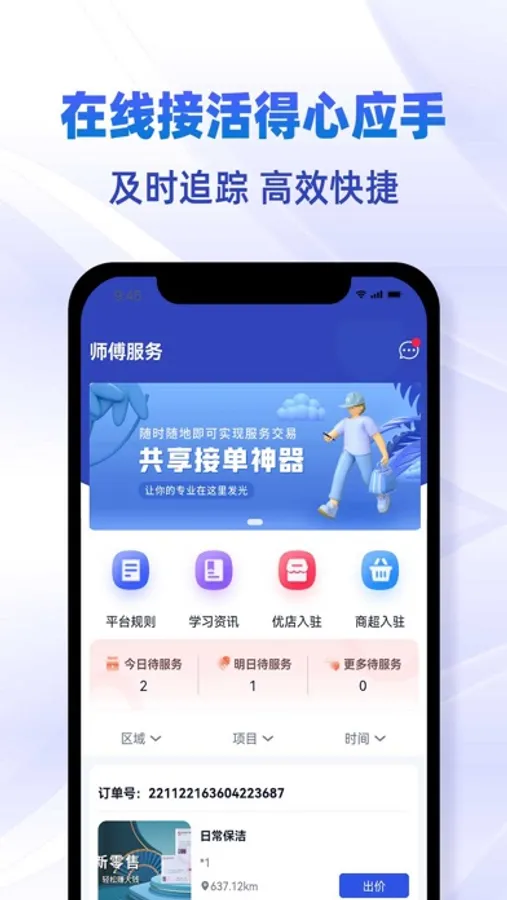 随时随地即可实现服务交易,共享接单神器,让你的专业在这里发光。