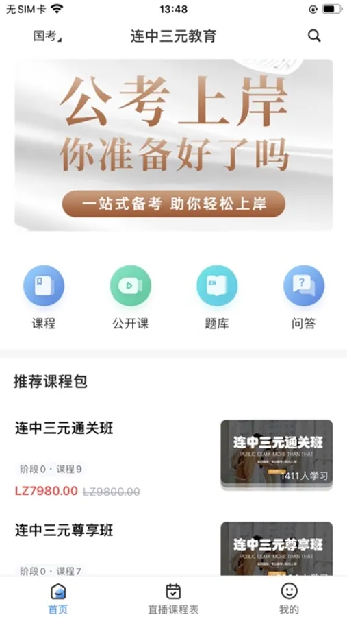 用户使用连中公考观看相关视频,学习相关知识对应的还可以做题考试,模拟考等功能,让用户学习起来更为方便,使用户学习的更方便的教育类产品。