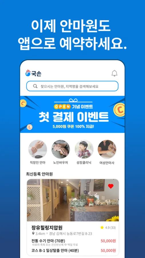오직 ‘국손’에는 ‘국가자격’을 갖춘 국가공인안마센터만 등록됩니다.