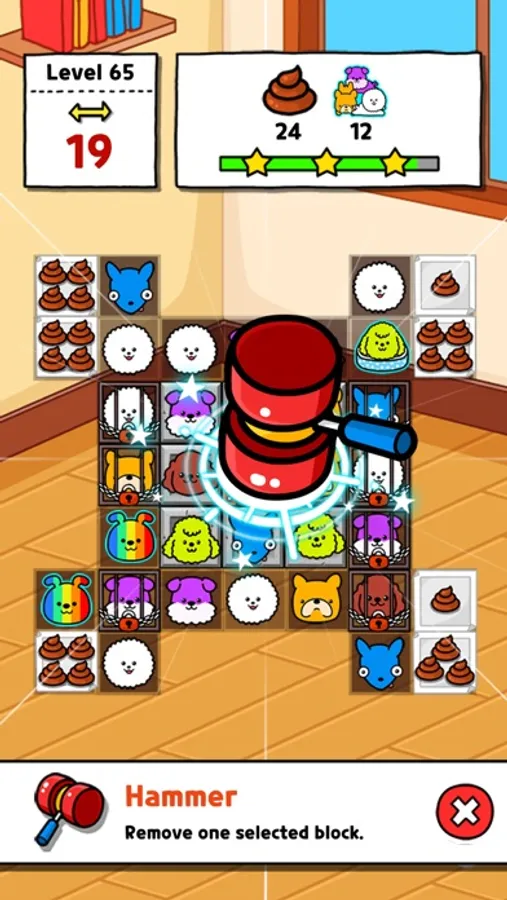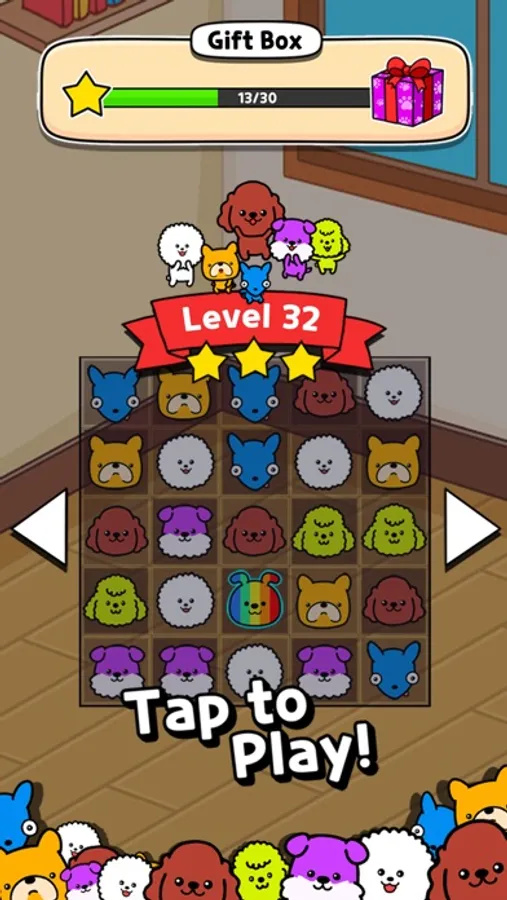- Connect 3 same dogs to collect dogs