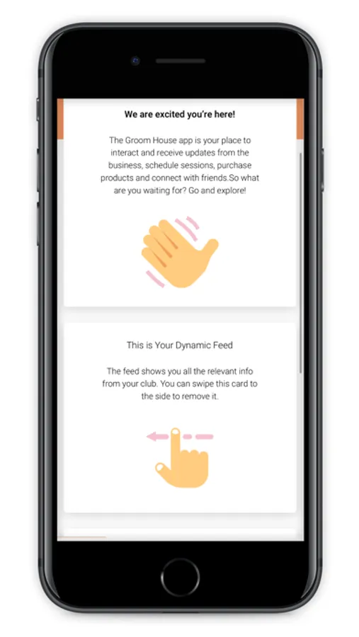 After setting up your personal profile in the app, you'll be able to easily renew your membership, purchase Groom House merchandise and connect with other Groom House members.