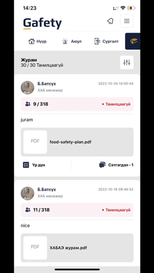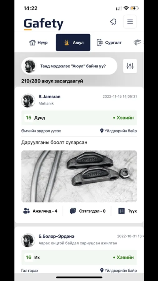 Application for hazard reporting, training, safety alerts, procedures, checklist, toolbox and safety management system.