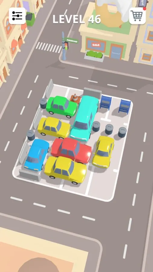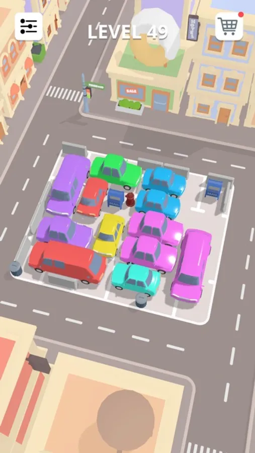 Can you solve the challenging park puzzle and get all the cars on the road?