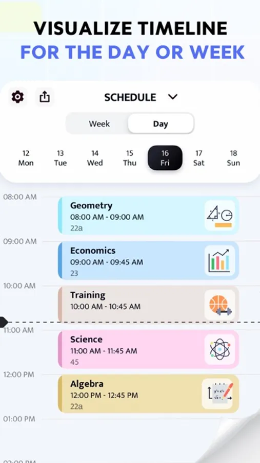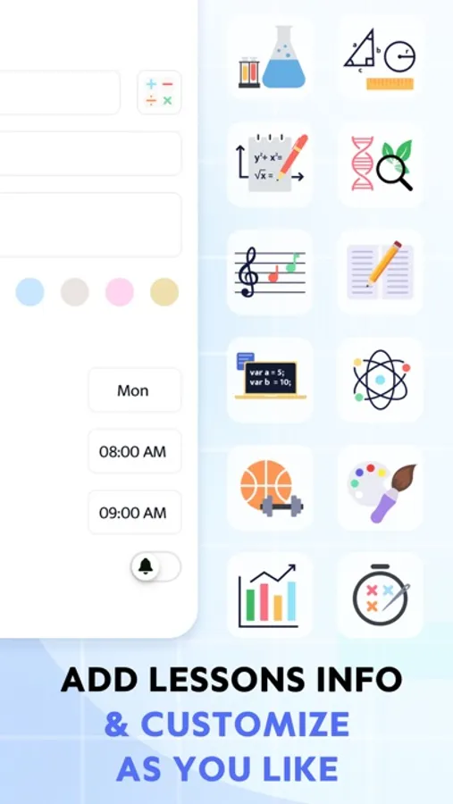 Personalize and improve your schedules using cool icons and suitable colors