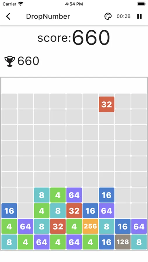 DropNumber game is a game that transforms the 2048 puzzle to make a bigger number by adding the falling numbers.