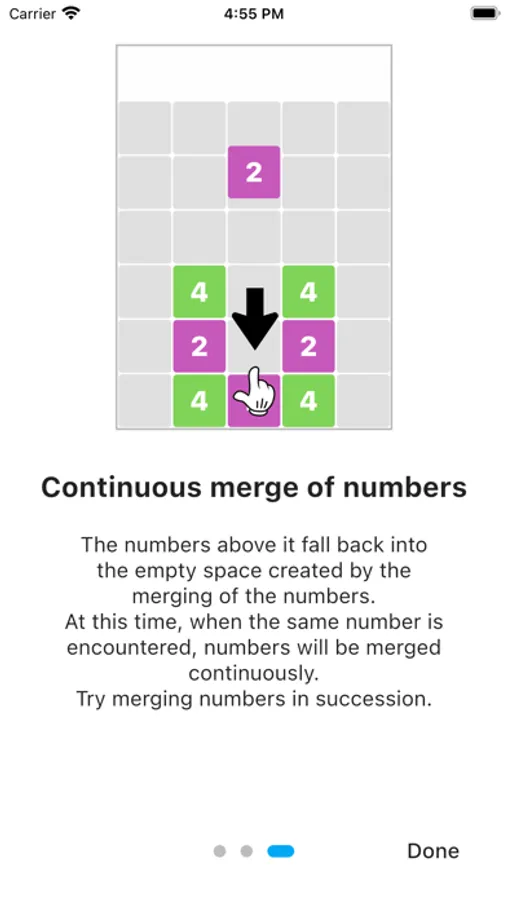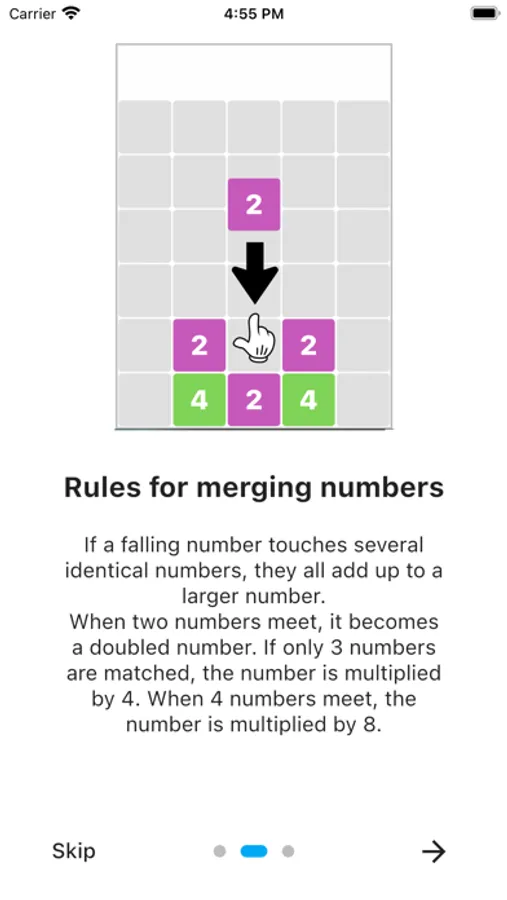 - When dropped numbers meet the same number, they are combined to make a bigger number.