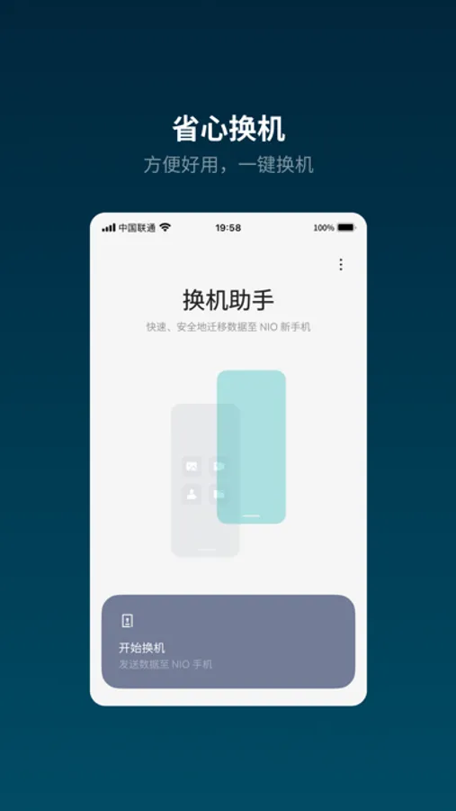 Turn on the hotspot on the NIO phone and display the QR code. Scan the code with the Transfer on the iPhone to connect to the hotspot on the NIO Phone.