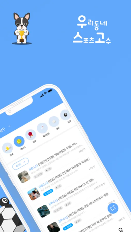 우스고(우리동네 스포츠 고수)는 우리동네의 스포츠인들이 만나서 다양한 운동을 즐길 수 있도록 돕는 앱이예요.