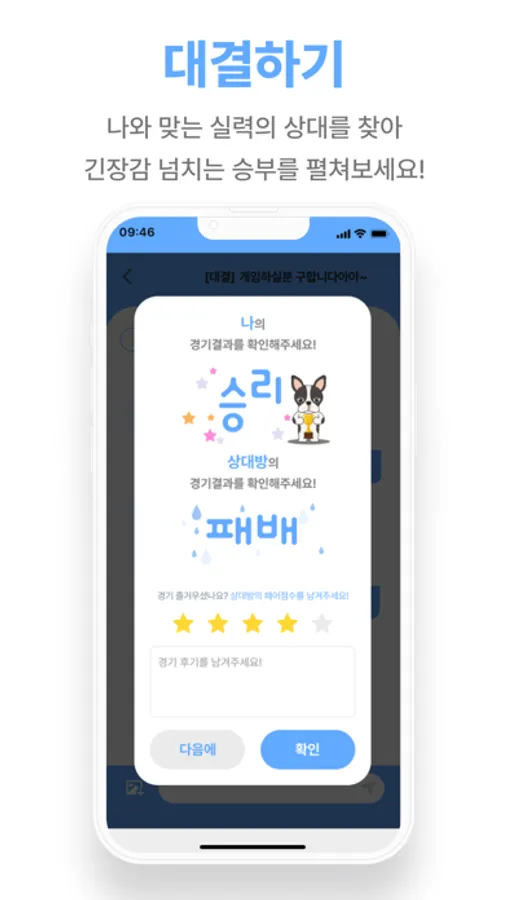 나의 수준에 맞는 상대를 찾아서 긴장감 넘치는 승부를 펼쳐보세요.