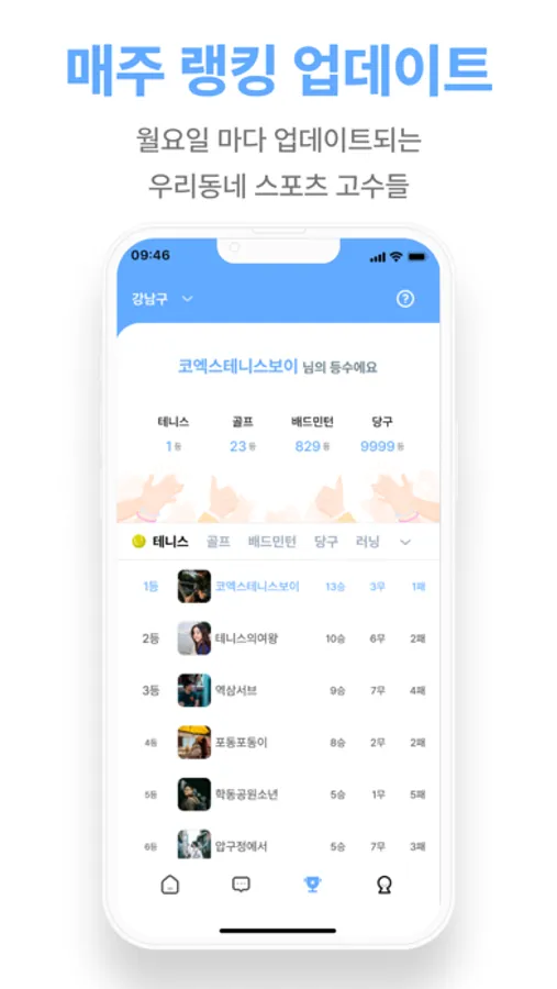 박진감 넘치는 스포츠도 즐기고, 우리동네에서 랭커의 자리도 노려보세요.
