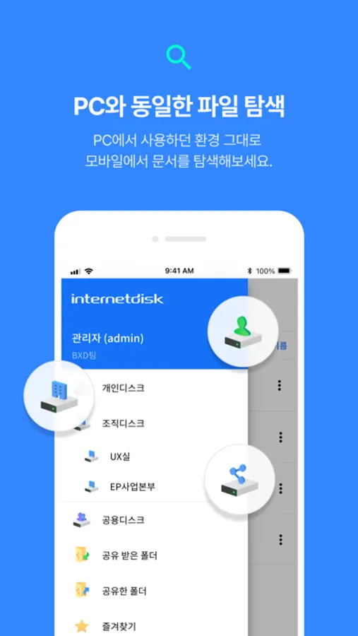인터넷디스크는 안전하고 원활한 업무 환경을 제공하는 구축형 프라이빗 클라우드 솔루션입니다.