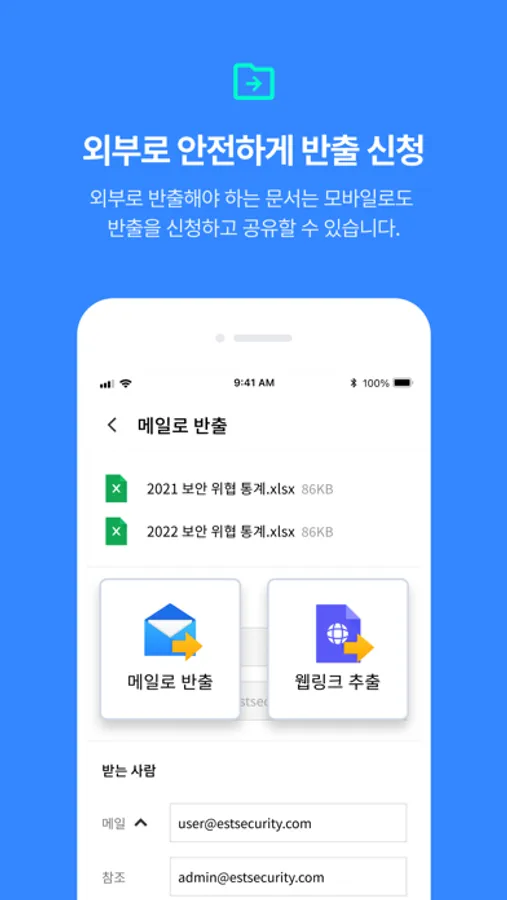 - 웹 링크 기능을 통해 외부 업체/해외 지사 등과 원활한 자료 공유 가능