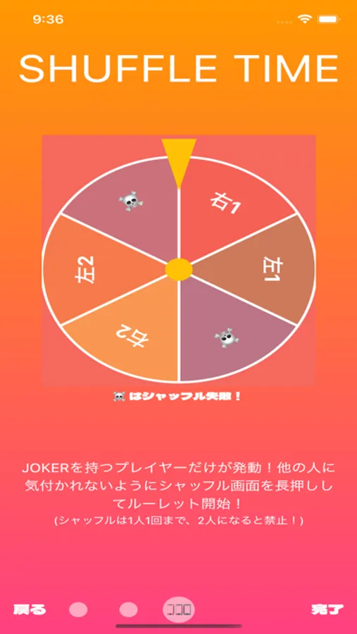 JOKERを持つプレイヤーはシャッフルボタンを長押ししてルーレット開始!