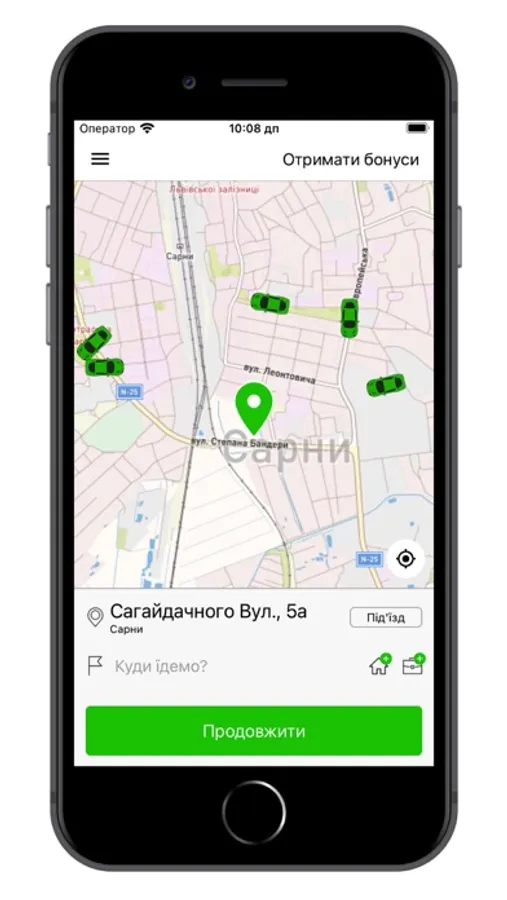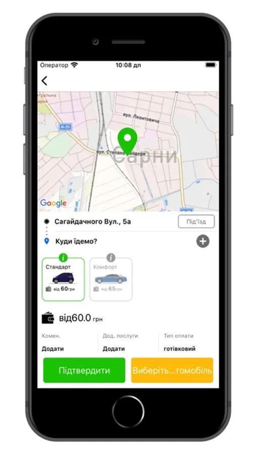 - Натиснути на кнопку для виклику таксі і підтвердити адресу.