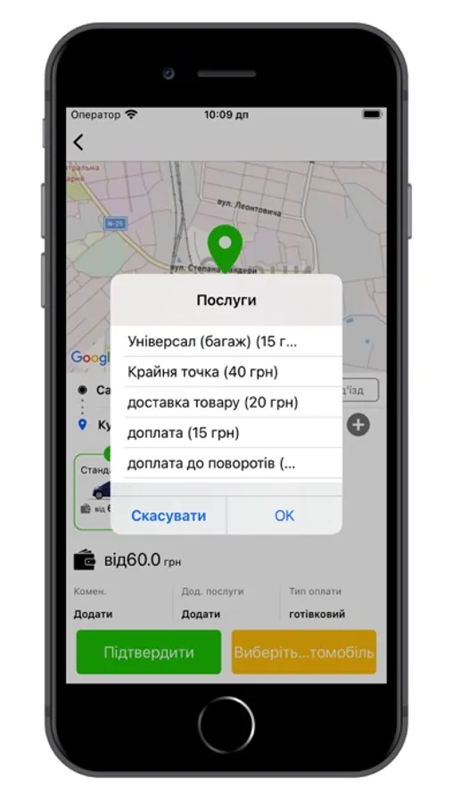 - Відображення на карті місцезнаходження машин таксі в реальному часі;