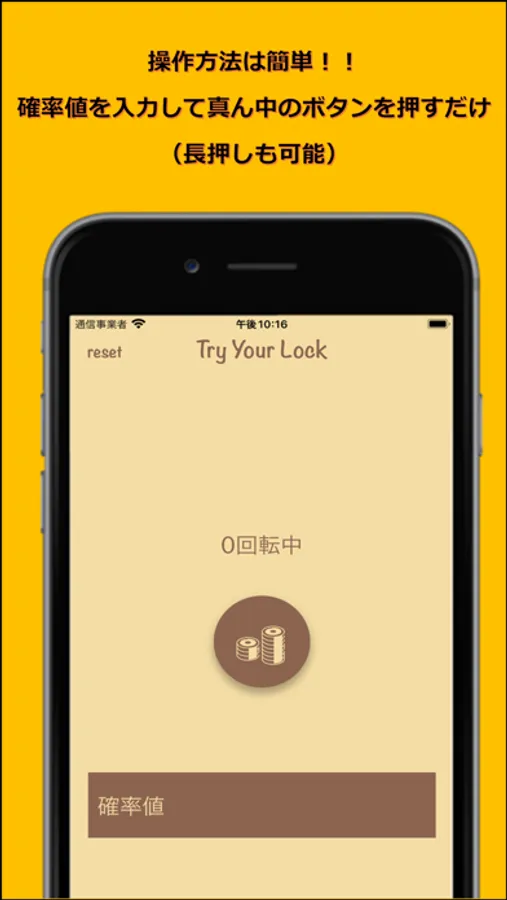 パチスロ確率シミュレータアプリは、自分で確率値を設定し、何回引いた時に当たるかをシミュレートするアプリになります。