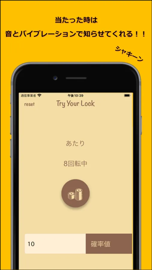 当たったは、音とバイブレーションで当たりを知らせてくれます。