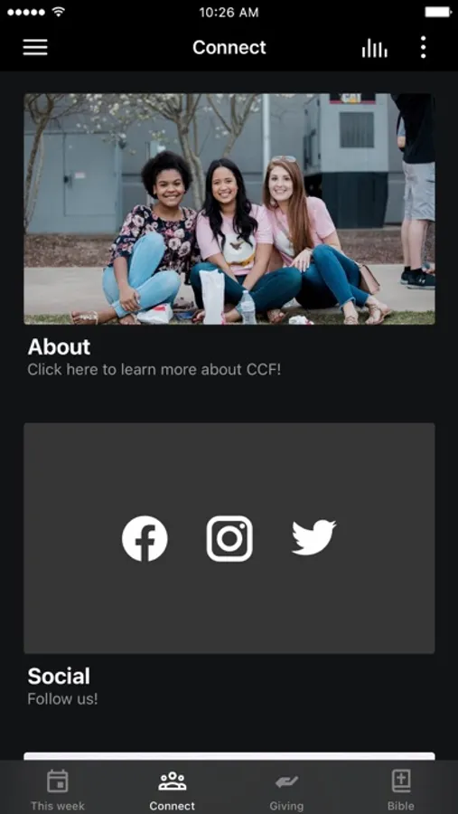 This app will help you stay connected with the day-to-day life of our church. With this app you can: watch or listen to past messages; stay up to date with push notifications; share your favorite messages via Twitter, Facebook, or email; and download messages for offline listening.