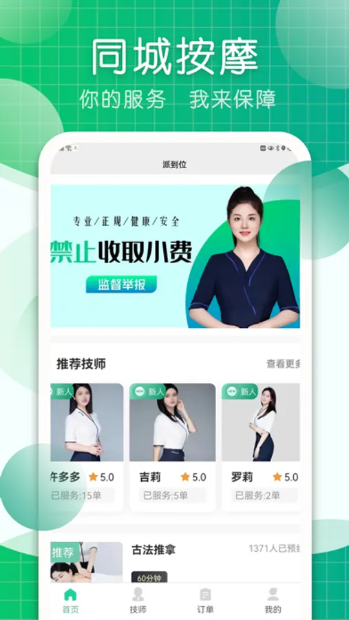 派到位是一款24小时上门按摩服务,以养生保健为主题的服务型APP,提供专业正规、安全便捷的同城上门推拿服务。面向全国运营的线上下单、线下上门的生活服务平台。本着“以人为本,客户至上”的管理理念,致力于为顾客提供“安心舒心”的生活服务,目前市场已经覆盖国内多个省市。