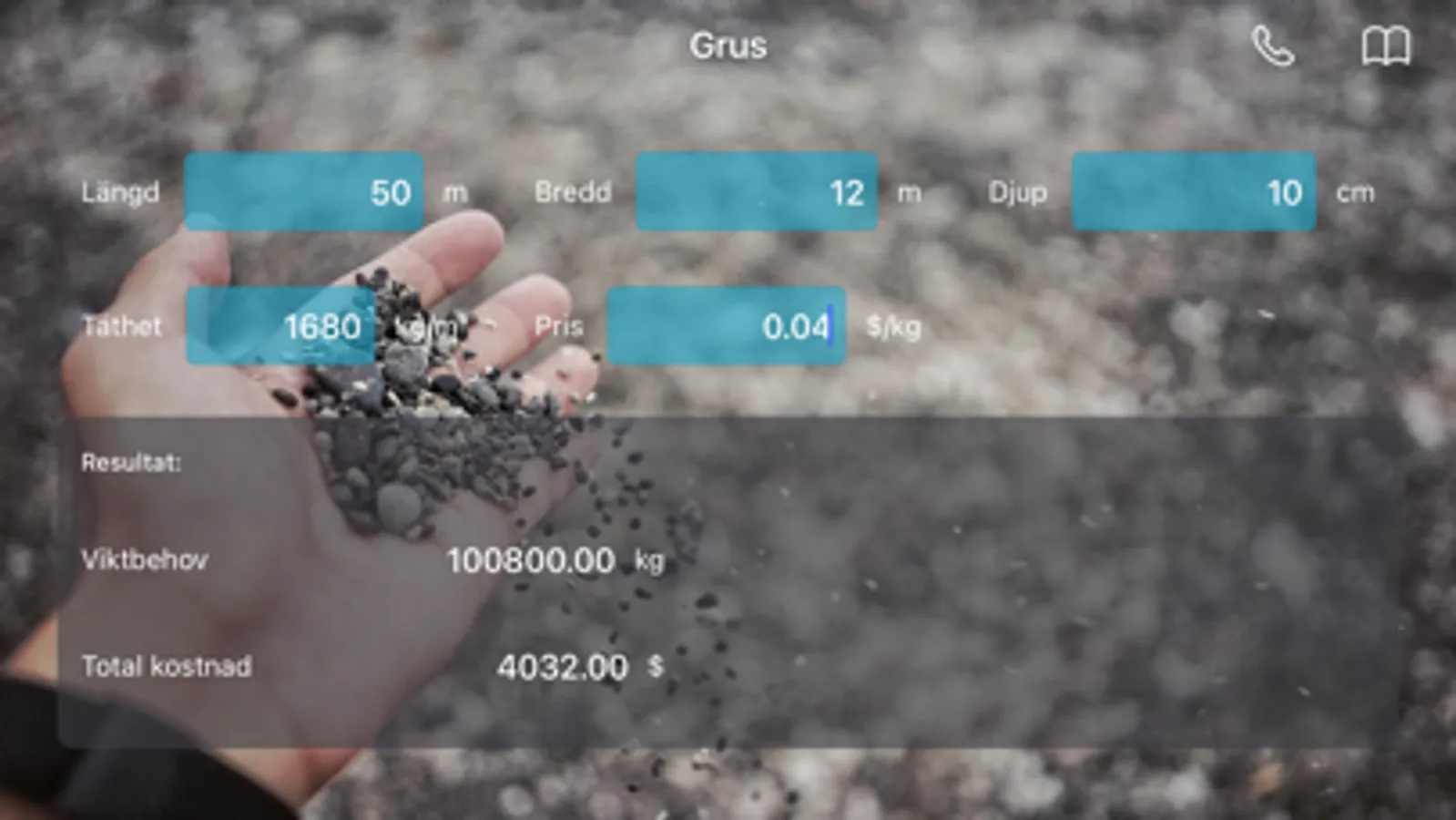 Efter att ha angett alla värden kommer grusräknaren automatiskt att ge dig det totala priset du kommer att spendera på gruset som du behöver.