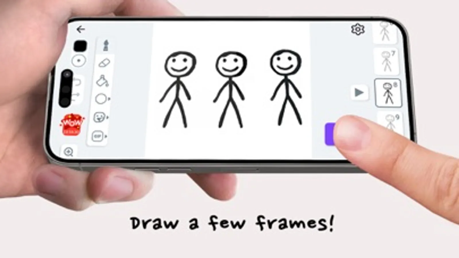 Become a real animator with our application: draw frame by frame and turn your drawings into a cartoon.