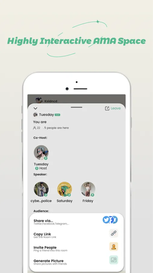 2: Space for One-Stop Interaction: allows interaction in the room for chatting, conferencing, sharing, airdropping, red packet grabbing, etc.