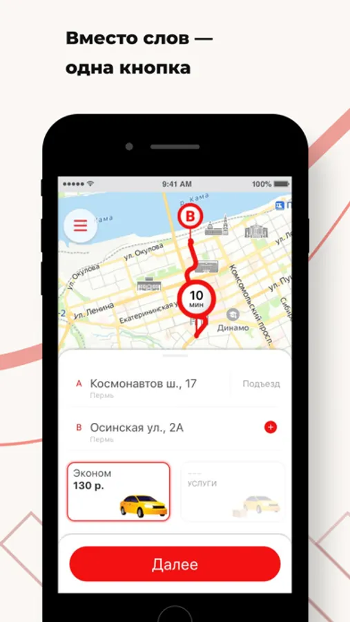 Откройте приложение, укажите адрес и закажите такси, нажав на одну кнопку.