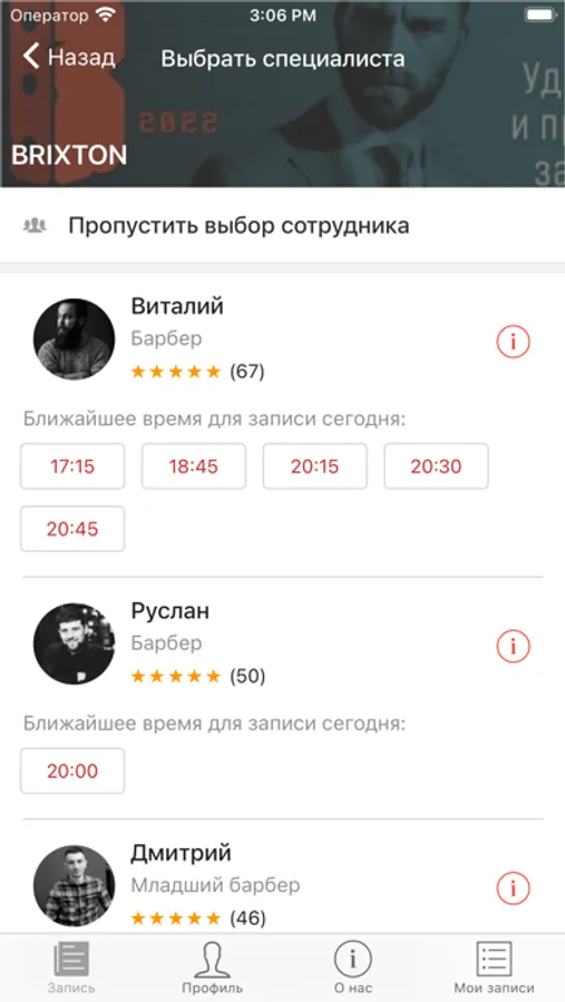 - простая и удобная запись в барбершоп к любимым мастерам в любое время 24/7;