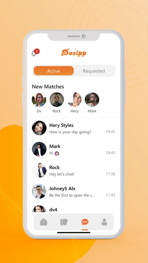 In the chat room you can chat with friends. These are the people with whom you have a match and the people from whom you have accepted a chat request. Push all your fears away and be the first to start the chat!