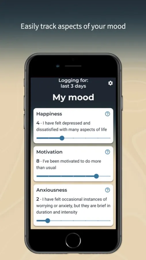 - Easily adapt your tracked behaviors as you learn more about what may be important to your mood